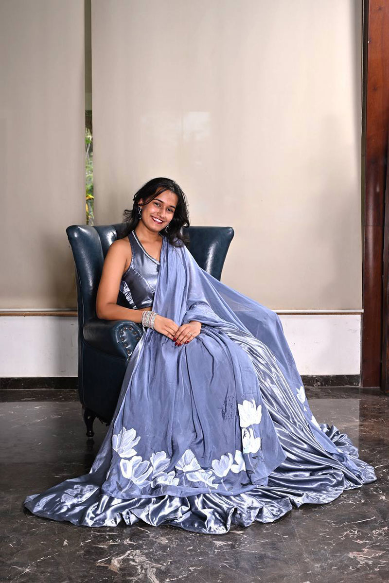 A perfect choice for twilight affairs and enchanting evenings, Moonlit Whispers is a symphony of serenity, grace, and hand-painted beauty.